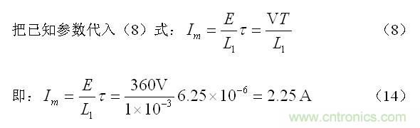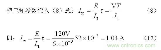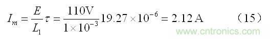 = 19.27uS ,由此可以求得流過開關(guān)變壓器初級線圈的最大電流Im為: