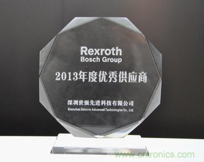世強(qiáng)獲博世力士樂(西安)2013年度優(yōu)秀供應(yīng)商獎(jiǎng)