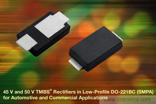 圖1:Vishay推出用于汽車和商業(yè)應用的新款45V和50V TMBS整流器