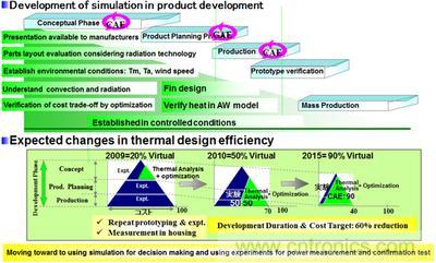 自2006年起,電裝一直在加強(qiáng)對(duì)模擬軟件的使用,以便減少花在物理原型方面的時(shí)間和成本。2009年,對(duì)模擬與物理原型的使用之比為20:80,到2010年已提高到50:50。2012年則達(dá)到了70:30。這種轉(zhuǎn)變使熱設(shè)計(jì)相關(guān)的時(shí)間和成本在不到六年的時(shí)間內(nèi)降低了50%。電裝計(jì)劃進(jìn)一步加大對(duì)模擬的使用,到2015年將這一比例提高到90:10以上。