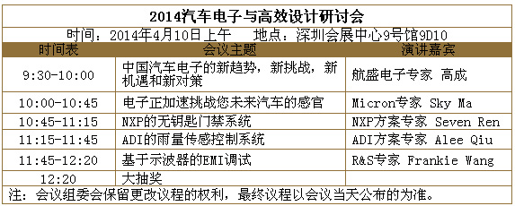 1.汽車電子和高效設(shè)計(jì)研討會(huì)(4月10日上午,深圳會(huì)展中心9號(hào)館9D10)