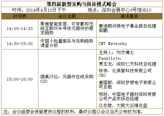 此次峰會(huì)旨在幫助供需雙方的經(jīng)理人了解熱點(diǎn)市場(chǎng)帶來的對(duì)半導(dǎo)體元器件的需求變化,中國(guó)小批量供應(yīng)服務(wù)與采購(gòu)趨勢(shì)。圓桌討論將針對(duì)采購(gòu)和供應(yīng)中的熱點(diǎn)話題,中國(guó)電子分銷商聯(lián)盟秘書長(zhǎng)劉杰博士與行業(yè)領(lǐng)先的國(guó)內(nèi)和國(guó)際分銷商總裁和總監(jiān)們逐一分享思路,歡迎參與互動(dòng)。參會(huì)可以通過網(wǎng)上或微信(關(guān)注我愛方案網(wǎng)),報(bào)名注冊(cè):