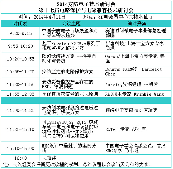 3.2014安防電子技術(shù)研討會(huì)暨第十七屆電路保護(hù)與電磁兼容技術(shù)研討會(huì) (4月11日,深圳會(huì)展中心六樓水仙廳)