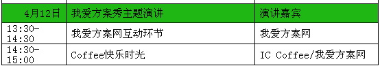 我愛方案網(wǎng)聯(lián)手中國(guó)電子分銷商聯(lián)盟,中國(guó)電子展和電子元件技術(shù)網(wǎng), 以激發(fā)設(shè)計(jì)靈感,力推中國(guó)原創(chuàng)為宗旨, 在2014中國(guó)電子展(中國(guó)電子信息博覽會(huì),4月10日-12日)期間推出六大熱點(diǎn)活動(dòng),服務(wù)中國(guó)的原創(chuàng)設(shè)計(jì),助力中國(guó)電子信息產(chǎn)業(yè)的騰飛!中國(guó)電子行業(yè)最具人氣的交流創(chuàng)新平臺(tái)IC咖啡為此次活動(dòng)的支持單位。歡迎現(xiàn)場(chǎng)偶遇知芯人。