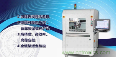 圣銘精密機械有限公司一直致力于自主產品的研發(fā),目前已經自主研發(fā)了全自動選擇性涂覆機,全自動 LED 芯片分光分揀機,全自動 LED 插件機,全自動 PCB分板機等產品。在本次NEPCON展會中,深圳市圣銘精密機械有限公司將展示國內首創(chuàng)的全自動一體涂覆機,可實現一臺機器正反面噴涂,具備生產效率大幅提高,節(jié)省空間等特點,同時,全自動涂覆機與高速點膠機的展出代表著深圳市圣銘精密機械有限公司的研發(fā)實力與明顯提高的產品生產力,值得一看。