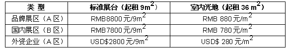 1)展位價(jià)格(申請(qǐng)截止日- 2015年4月10日 )注:雙面開口展位加收20%,18平米免收開口費(fèi)?。?/div>