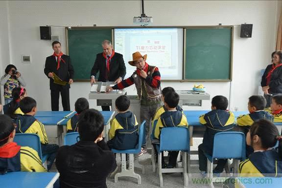 在本次活動上,TI同時開展了“TI魔力芯動課堂”特色科學(xué)興趣課程。來自TI的志愿者們設(shè)計了電子科學(xué)相關(guān)的趣味教具和課件,并親自為小學(xué)生們授課。該課程的設(shè)計旨在借由益智的電子教具,通過動手實踐使學(xué)生體驗電子科學(xué)的奧妙。此次,TI高級副總裁、全球技術(shù)與制造部總經(jīng)理Kevin Ritchie也擔(dān)任了志愿者講師,并生動形象的向小學(xué)生介紹了晶圓、芯片、電路板和電子產(chǎn)品的關(guān)系。
