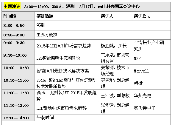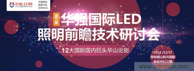 《第三屆華強國際LED照明前瞻技術研討會》將于2014年12月17日(周三)在廣東省深圳市科技園科興國際會議中心3樓舉行,屆時臺灣拓撲產業(yè)研究所所長楊勝帆、NXP市場營銷總監(jiān)王永斌、Marvell技術市場經理關振源、明微電子副總經理李照華、昂寶副總裁高維、昂帕董事長桑鈞晟博士、英飛特電子副總經理張華建、華燦光電副總裁王江波、聚元微電子總經理韓興成、綠寶石技術總監(jiān)伍松、中昊光電總經理王孟源、華燦光電副總裁王江波、清華大學副研究員錢可元將親自前來與您共同探討2015年LED照明市場的新需求、新變化和新趨勢,精彩就在眼前,期待您也能撥冗前來共襄這一LED照明行業(yè)全明星盛會。