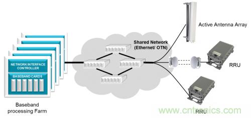 射頻單元位于緊鄰塔頂天線的位置,以避免功率損耗。這些遠(yuǎn)端射頻單元通過(guò)光纖連接至基帶 BTS 機(jī)架。制定的通用公共無(wú)線接口(CPRI) 協(xié)議用來(lái)傳輸數(shù)據(jù)和同步遠(yuǎn)端射頻。在有些無(wú)法使用光纖的情況下,使用微波或毫米波無(wú)線電來(lái)傳送 CPRI 有效負(fù)載。這種架構(gòu)轉(zhuǎn)變使運(yùn)營(yíng)商有望能夠混合使用和匹配來(lái)自不同系統(tǒng)廠商的無(wú)線電和基帶機(jī)架,以降低成本,改善供應(yīng)鏈,以及簡(jiǎn)化庫(kù)存管理。然而互操作性問(wèn)題讓這種希望化為了泡影,不過(guò)為一級(jí)系統(tǒng)廠商開(kāi)啟了新方法,使其能夠利用來(lái)自小廠商的無(wú)線電設(shè)備來(lái)控制針對(duì)不同地區(qū)的無(wú)線電設(shè)備種類(lèi)的快速增長(zhǎng)。