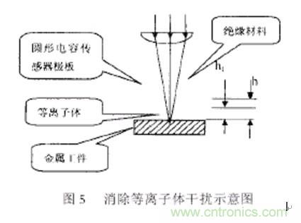 等離子體對(duì)電容傳感器的干擾是由于等離子體改變了電容兩極板之間的介質(zhì)。因此,為了消除等離子體對(duì)電容傳感器的干擾,就要使電容兩極板之間的介質(zhì)不受等離子體的影響,可以加大圓環(huán)形極板的中心小孔和將電容傳感器移至等離子云以外兩種方法來(lái)實(shí)現(xiàn)。
