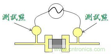 但是如果讓這些探針直接接觸到板子上面的電子零件或是其焊腳,很有可能會壓毀一些電子零件,反而適得其反,所以聰明的工程師就發(fā)明了「測試點(diǎn)」,在零件的兩端額外引出一對圓形的小點(diǎn),上面沒有防焊(mask),可以讓測試用的探針接觸到這些小點(diǎn),而不用直接接觸到那些被量測的電子零件。