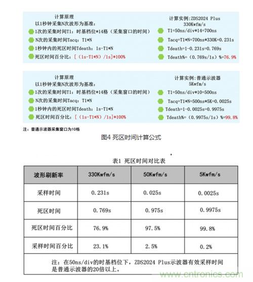 圖5 不同示波器死區(qū)時間對比