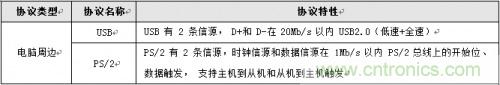 表3.電腦周邊相關(guān)協(xié)議級(jí)特征