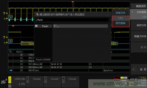 同時(shí),支持解碼細(xì)節(jié)顯示,具有詳細(xì)的事件表(事件表內(nèi)容包括開(kāi)始時(shí)間、結(jié)束時(shí)間、名稱及數(shù)據(jù)),可以以報(bào)表網(wǎng)頁(yè)或CSV格式導(dǎo)出,方便工程師進(jìn)一步分析,如圖11所示。