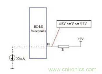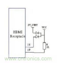 利用來(lái)自HDMI連結(jié)器的5V電壓和VCC來(lái)提供HPD所需的5V電壓,這種方式違反了HDMI兼容性測(cè)試要求。