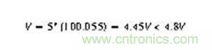 圖1.+5V電源 當(dāng)連接一個(gè)10Ω的電阻時(shí),輸出降低,導(dǎo)致測(cè)試失敗