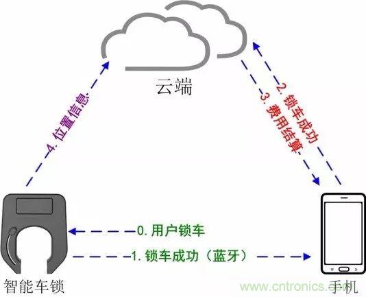 共享單車應(yīng)用,其實(shí)就是通過(guò)“單車-云端-用戶手機(jī)”之間的信息傳遞來(lái)完成的,其中最關(guān)鍵的是解閉智能鎖的過(guò)程。目前,最新的“GPS定位+藍(lán)牙”解鎖和還車模式已經(jīng)比較普遍。