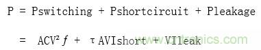晶體管在跳變過(guò)程中,短暫的電源和地導(dǎo)通帶來(lái)的短路功耗;以及由漏電流引起的漏電功耗。其中跳變功耗和短路功耗為動(dòng)態(tài)功耗,漏電功耗為靜態(tài)功耗。以下是SoC(即CPU)功耗分析的經(jīng)典公式: