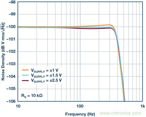 圖6. 各種電源電壓對(duì)應(yīng)的輸出噪聲密度