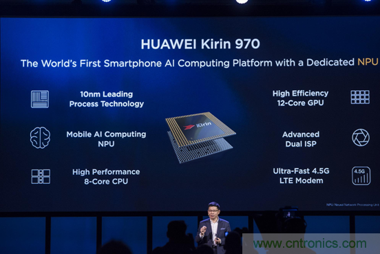 2017年9月,華為在德國柏林國際電子消費(fèi)品展覽會(IFA)上正式推出其最新 AI 芯片 “麒麟 970”(Kirin 970)。麒麟 970集成 NPU 專用硬件處理單元(寒武紀(jì)IP),創(chuàng)新設(shè)計了 HiAI 移動計算架構(gòu),其 AI 性能密度大幅優(yōu)于 CPU 和 GPU。10月,華為在德國慕尼黑發(fā)布了搭載麒麟 970的新款旗艦手機(jī)Mate 10,最主要的賣點(diǎn)便是人工智能。NPU新架構(gòu)讓華為手機(jī)在處理同樣的AI任務(wù)時,得到了50倍能效和25倍性能提升。