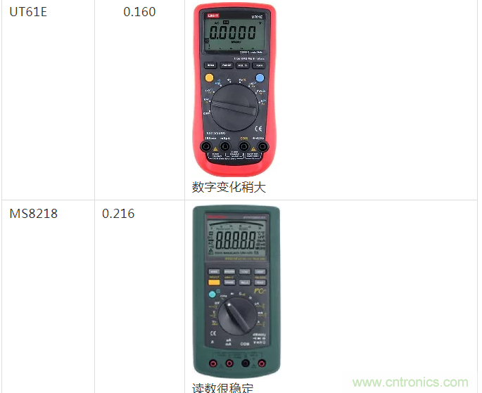 那么,使用數(shù)字萬(wàn)用表是否可以測(cè)量隨機(jī)噪聲大小呢?在分析之前,可以先對(duì)比幾種不同的萬(wàn)用表對(duì)隨機(jī)噪聲測(cè)量的結(jié)果。