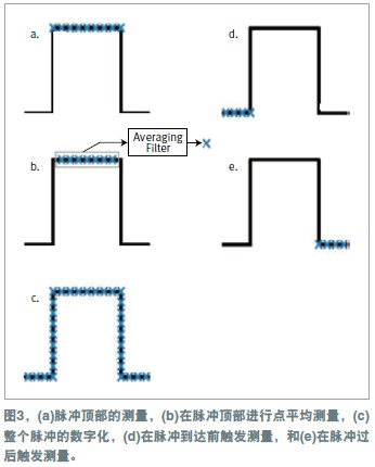 有時,對脈沖通過器件或者系統(tǒng)時的傳輸特性的測量也很有意義。這些應(yīng)用需要對整個脈沖進(jìn)行數(shù)字化,包括其上升沿和下降沿(圖3c)。通過高速ADC來進(jìn)行異步于源操作的測量,就可以完成這種測量。