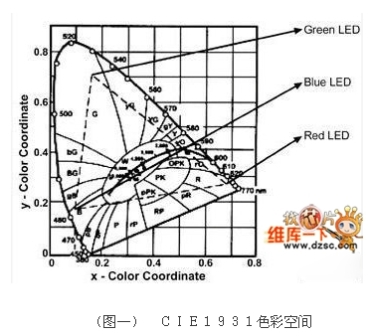 基本上來說,三色光感測器會產(chǎn)生一個(gè)三維色彩規(guī)格系統(tǒng),因此稱為RGB感測器色彩空間,這個(gè)系統(tǒng)可以讓特定色彩由感測器的輸出電壓來指定,例如具備特定亮度的D65白光可以記錄為:(Vred, Vgreen, Vblue)=(2.0,?。玻?, 1.9)volts。