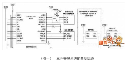 另一個(gè)更先進(jìn)的光學(xué)反饋方式則是采用三色光感測器,通常包含三個(gè)獨(dú)立的光感測器以及上方的三色濾鏡,讓這類光感測器能夠記錄色彩資訊而不只是亮度,這將可以進(jìn)一步控制紅、綠與藍(lán)光LED的發(fā)光強(qiáng)度比,這個(gè)功能相當(dāng)關(guān)鍵,因?yàn)樗專遥牵鹿庠吹牧炼扰c色度得以控制,而ASSP則在三色光學(xué)反饋設(shè)計(jì)上扮演了重要的角色。