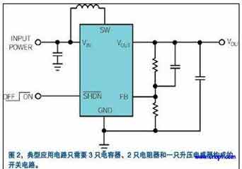 LinearTechnology公司推出的LTC3459是解決這些應(yīng)用問題的一系列升壓轉(zhuǎn)換器中的一個例子。LTC3459這種器件有一種突發(fā)模式,用以在輕載電流下保持轉(zhuǎn)換器的效率。它還具有浪涌電流限制、短路保護(hù)和關(guān)機(jī)期間負(fù)載隔離等功能。盡管具有這些功能,但典型的應(yīng)用電路只要求在開關(guān)電路中有三只電容器、兩只電阻器和一個升壓電感器(圖2)。Wells說,因?yàn)?ldquo;轉(zhuǎn)換器工作時的峰值電流小約75mA,所以一個0805小型電感器……能輕易達(dá)到與一個集成電荷泵相同的占用電路板面積。”