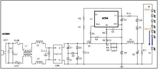 5、A704的LED日光應用方案比較成熟可靠,我們可提供LED日光燈可過EMC測試的PCB線路及BOM表參考,提高客戶設計開發(fā)產(chǎn)品的速度!