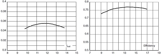 這參考設(shè)計在不同交流輸入電壓條件下的輸出電流及在不同直流電壓條件下的能效測試結(jié)果分別如圖3a及3b所示。其中,如圖3b所示,這參考設(shè)計在11至17 Vdc范圍下能效高于0.75,這個能效數(shù)據(jù)在這類低功率應(yīng)用中表現(xiàn)亮眼。
