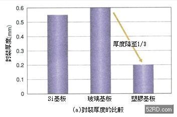 有關(guān)封裝薄形化的發(fā)展,以TDK與半導(dǎo)體能源研究所共同開(kāi)發(fā)的照度感測(cè)元件為例,它是採(cǎi)用塑膠材料當(dāng)作基板,開(kāi)發(fā)厚度只有與「0402size」、「0603size」等被動(dòng)元件同等級(jí)的照度感測(cè)元件;相較之下傳統(tǒng)玻璃基板的照度感測(cè)元件卻高達(dá)(圖8),該公司也在開(kāi)發(fā)內(nèi)建可以使光電流增幅100倍增幅電路的PhotoIC,外形尺寸則與「2015size」同等級(jí)(圖8(b))。