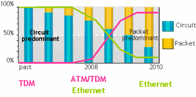 圖2城域網(wǎng)主導(dǎo)業(yè)務(wù)類型由TDM向Packet的轉(zhuǎn)換