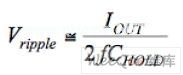 在第一階段,充電電流流入到C1。該充電電流的初始值決定于電容C1兩端的初始電壓、C1的ESR以及開關的電阻。在C1充電后,充電電流呈指數級地降低。充電時間常數是開關周期的幾倍,更小的充電時間常數將導致峰值電流增加。在這個時間內,輸出電容CHOLD提供負載電流線性放電的電量,放電量等于: