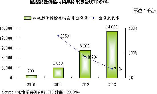 - 2010年無(wú)線影像傳輸技術(shù)晶片出貨量為70萬(wàn)組