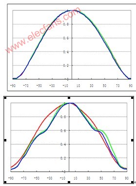 過比較可以看出,SMD的配光一致性比橢圓LED有明顯優(yōu)勢。