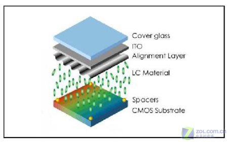 LCOS投影技術(shù)最大的特色在于其面板的下基板采用矽晶圓CMOS基板,由于下基板的材質(zhì)是單晶矽,擁有良好的電子移動(dòng)率,而且單晶矽可形成較細(xì)的線路,因此比較容易達(dá)成高解析度的面板。