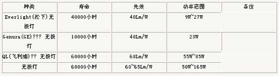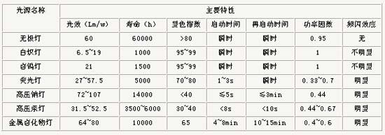 無(wú)極燈與其它光源參數(shù)值比較