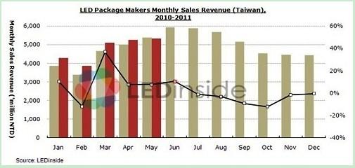 - 5月份,LED產(chǎn)業(yè)營(yíng)收表現(xiàn)不如預(yù)期