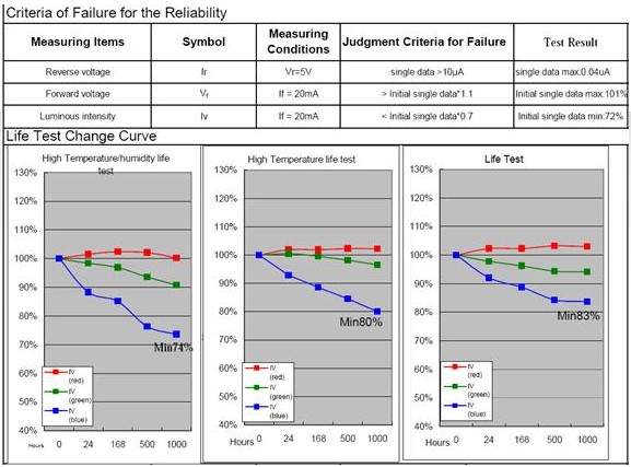一般來(lái)說(shuō),當(dāng)LED顯示屏運(yùn)行到一定時(shí)間,所有的LED發(fā)光管都會(huì)出現(xiàn)亮度衰減,而且三基色管的衰減曲線不一致。因此,它們的亮度也會(huì)較出廠前的亮度有所降低。然而,每個(gè)LED發(fā)光管光電特性的差異,使它們亮度的下降程度產(chǎn)生偏差。于是,當(dāng)顯示屏使用一段時(shí)間后,發(fā)光管會(huì)出現(xiàn)不同程度的亮度衰減,使得像素之間顯示不均勻,從而與最初出廠時(shí)的屏幕相比,整個(gè)圖像會(huì)呈現(xiàn)一種粒狀顯示狀態(tài),或整體亮度下降。三基色管衰減曲線不一致使白平衡、色溫等發(fā)生改變。