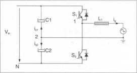 電氣連接為漏電流提供了流通路徑,是高效率的非隔離光伏并網(wǎng)逆變器應(yīng)用的最大障礙。漏電流問(wèn)題會(huì)產(chǎn)生寄生電容150nF/kWp,引起開(kāi)關(guān)頻率共模電壓源。目前大多采用電路結(jié)構(gòu)SPWM調(diào)制的策略。