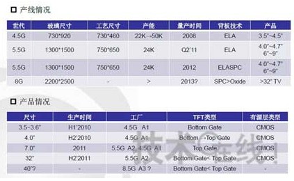 目前,AMOLED市場在迅速擴(kuò)大。特別是2011年三星顯示器(SMD)推出了Super AMOLED plus,更是加速了AMOLED顯示屏的普及。2011年AMOLED面板市場份額中,三星約占70%。三星的生產(chǎn)線和產(chǎn)品情況如圖4所示。此外,索尼也于2011年推出了17和25英寸的AMOLED 專業(yè)顯示屏。