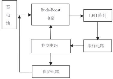 圖2 可知,Buck-Boost 電路將蓄電池電能變換后對(duì)LED 陣列供電,采樣電路對(duì)流過LED 的電流采樣,將信號(hào)傳到控制電路??刂齐娐贩治霾蓸有畔?,調(diào)節(jié)Buck-Boost 電路中開關(guān)管的占空比,保證通過LED 電流恒定;當(dāng)電路出現(xiàn)異常時(shí),通過控制保護(hù)電路切斷電源,保證LED 不受損害。一般情況下,LED 驅(qū)動(dòng)電路必須滿足下列要求:
