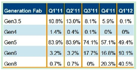友達(dá)、新奇美、京東方、華映和瀚宇等廠商計(jì)劃于 2012年將更多資源投入到生產(chǎn)平板電腦面板上。盡管五代線和更低世代線主要以生產(chǎn)小筆電和平板電腦面板為主,但到 2012年第一季,預(yù)期有超過(guò)一半的小筆電和平板電腦面板將放在六代線和八代線上生產(chǎn)。