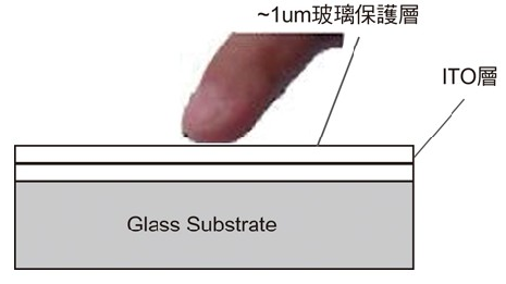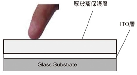 圖1(a)電容式觸控面板感應(yīng)電容范例:表面接觸型觸控玻璃