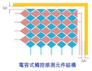 圖1(c)電容式觸控面板感應(yīng)電容范例:電容式感測電容元件與隔離導(dǎo)線