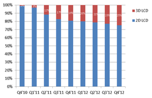 過去一年,雖然國際市場(chǎng)需求下降,但是中國彩電市場(chǎng)仍保持穩(wěn)定成長。而2012年中國3D頻道的開播,不僅將3D電視熱潮推到更高,也成為拉動(dòng)彩電銷售增長的一個(gè)新亮點(diǎn)。根據(jù)NPD DisplaySearch報(bào)告指出,2012年第四季中國3D電視滲透率可達(dá)25%。