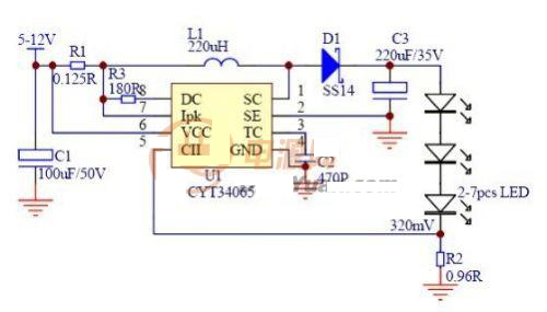 CYT34065是在CYT34063基礎(chǔ)上,改進設(shè)計而派生的LED驅(qū)動器。CYT34065繼續(xù)保留CYT34063優(yōu)秀的特點外,并且還能高效率的驅(qū)動LED。CYT34065是專門為LED大功率而設(shè)計的一款直流驅(qū)動器,可選擇升壓、或降壓應(yīng)用,最大輸出典型值1A,效率高達85%以上。 蓄電池直流應(yīng)用設(shè)計場所中CYT34065有著較高的性價比,高可靠性、穩(wěn)定性高,恒流效果極佳。
