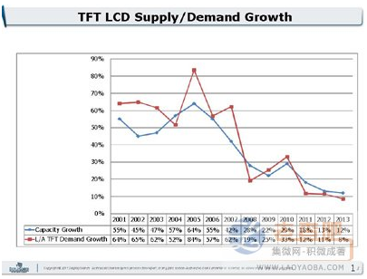 圖1 TFT LCD面板供給與需求成長(zhǎng)速率