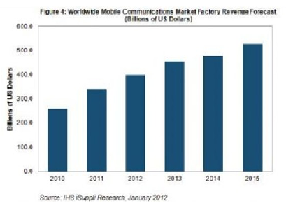 • 2012年移動(dòng)通信市場的工廠營業(yè)收入預(yù)計(jì)達(dá)到3980億美元